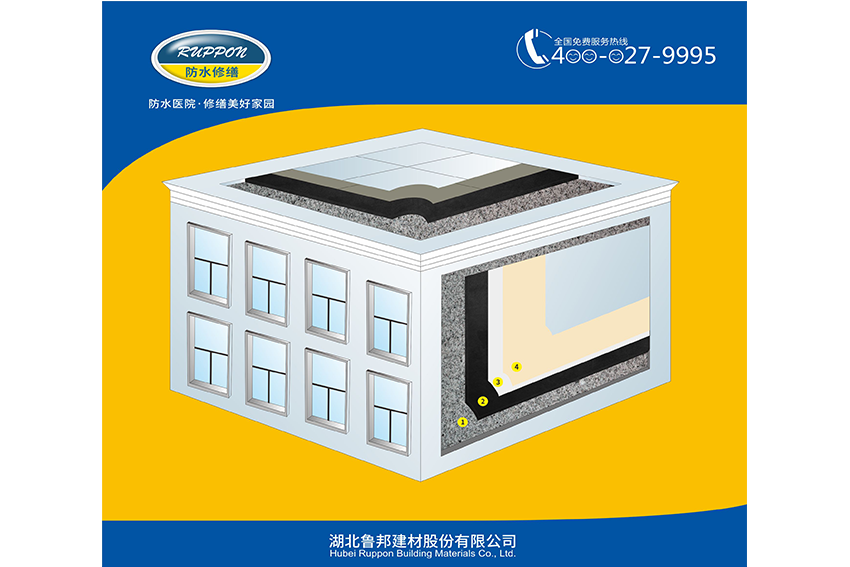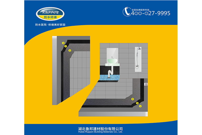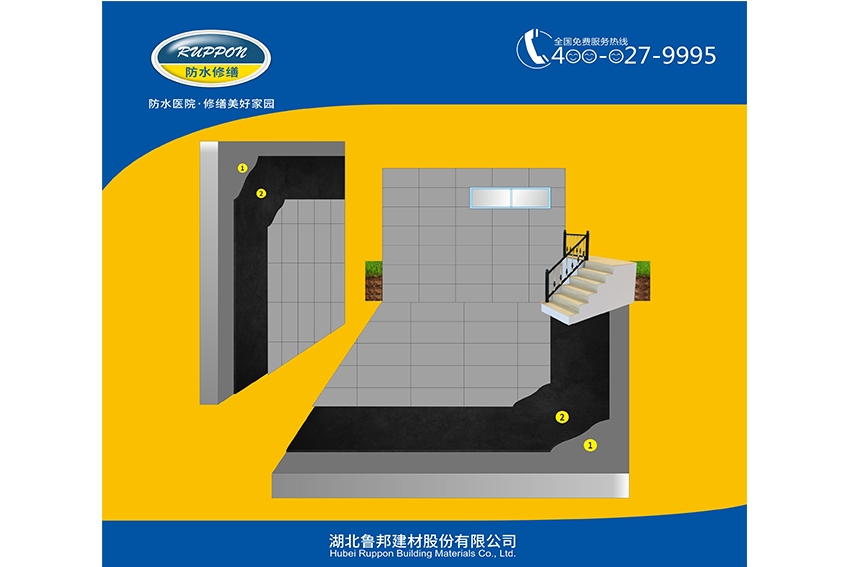 (5)保護、裝飾層:待涂膜完全干燥固化后,選擇與原內(nèi)墻相同或相近的材料與色澤,用魯邦Ruppon防水修復專用砂漿作粘結(jié)層,補修裝飾面層。