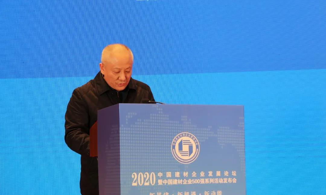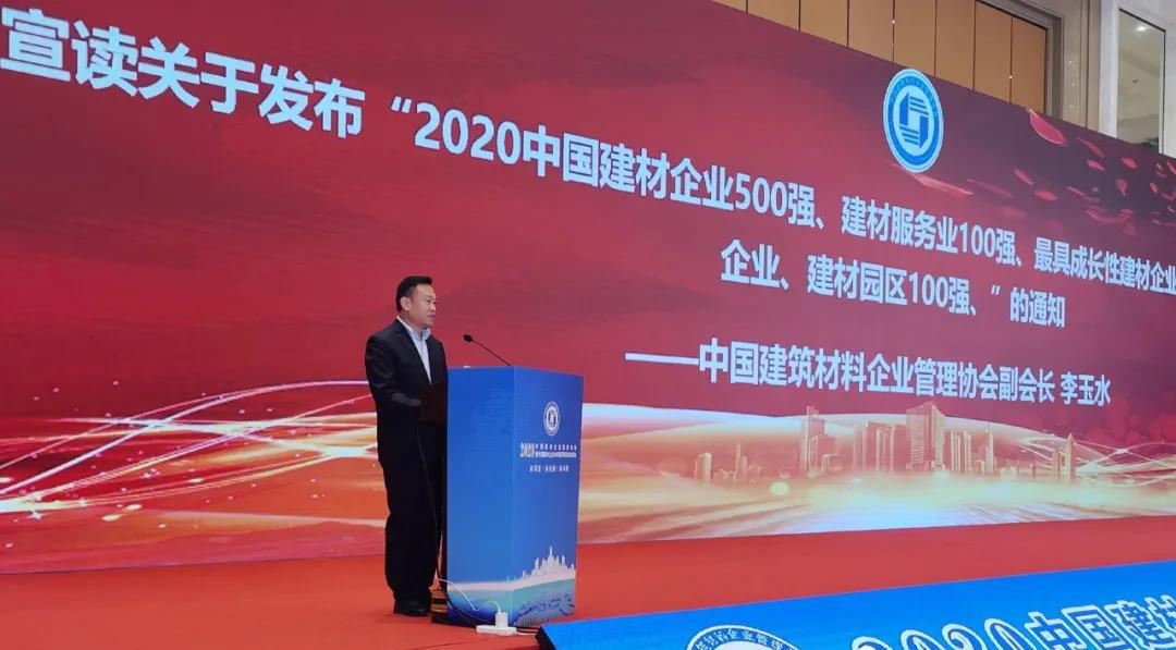 中國建筑材料企業(yè)管理協(xié)會副會長李玉水宣讀關(guān)于發(fā)布2020中國建材企業(yè)500強(qiáng)等獎(jiǎng)項(xiàng)的通知